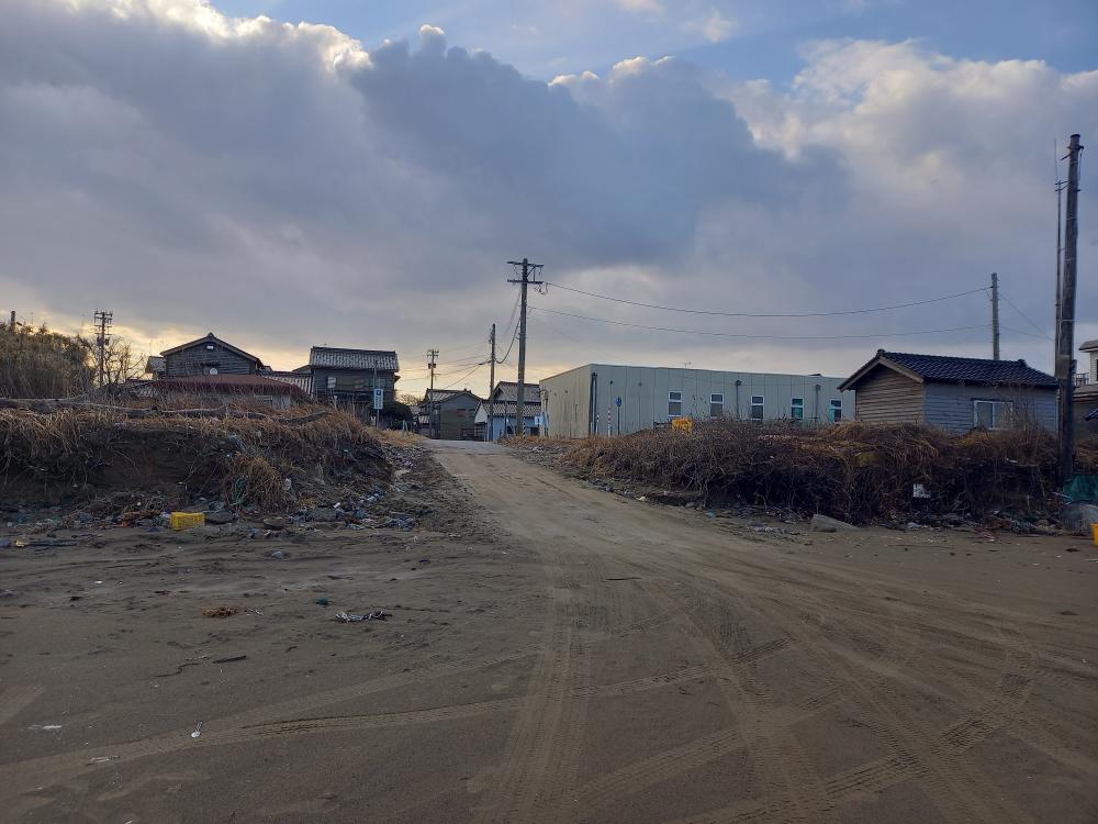 2月3日柴垣ギャラリー前ポイントの海岸にトイレ横からの車の乗り入れる際、海岸との段差があり、普通車は今の所、注意が必要です。今のシーズンはあまり入らないポイントですが、波のサイズが小さければ入る可能性があります。大シケが続くと漂流物で塞がれる場合もあるのでご注意を。