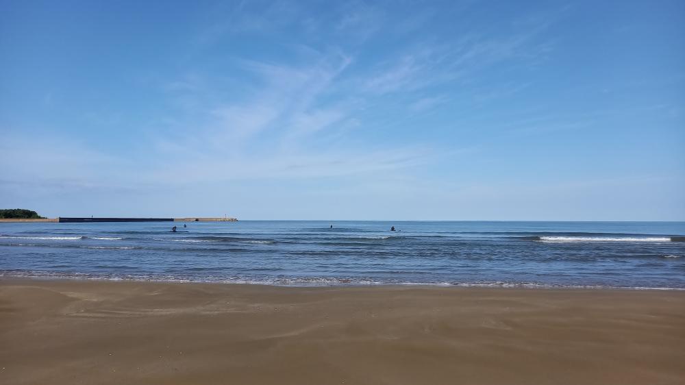 南の風強い。サイズもも〜腹。アウトからミドルの波数多くまとまりに欠けたグチャつくブレイク。たまに入る形の良い波選べば繋いでなんとか1アクション程度可能。人数 3 AM7:41