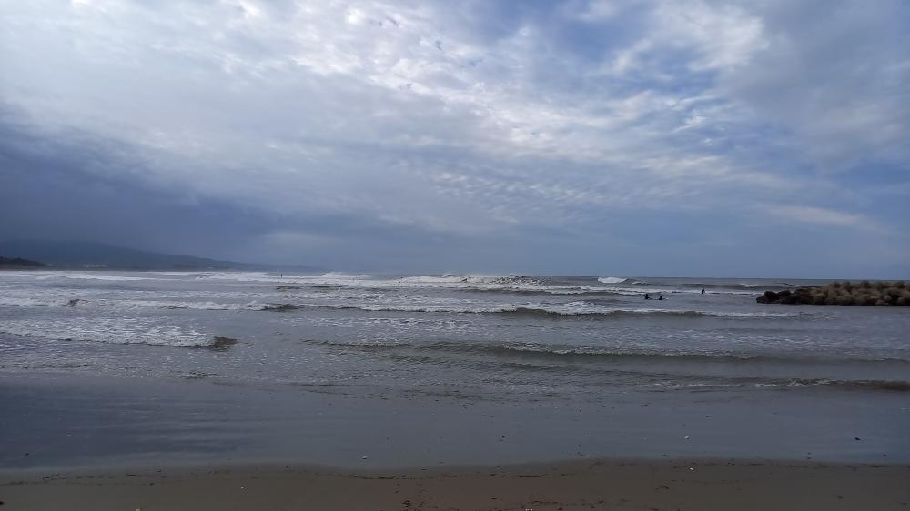 北北東の風やや強い。面OK。サイズ腹〜胸。アウトからのミドルの厚くトロ・ワイドの速いブレイク。たまに入る波の切れ目選べば繋いでアクション入れながら走れます。人数 90 AM7:46