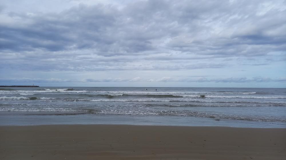 北の風弱い。面OK。サイズひざセットもも。弱いウネリとミドルからインサイド寄りの厚くヨレヨレの速いブレイク。たまに入るセットの切れ目選べば繋いで少し走って1アクション程度可能。人数 7 AM7:55