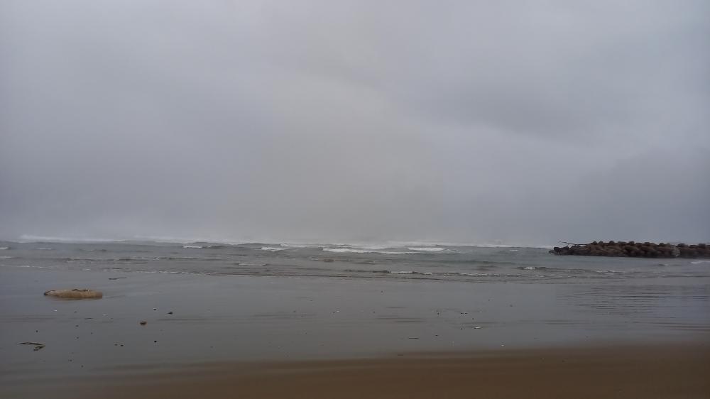 北西の風弱い。ほぼクローズ・アウト!アウトから頭サイズの波が数多く打ち寄せるシケ状態。乗れそうな波はありません。 AM8:00