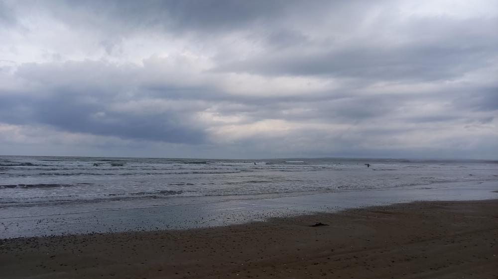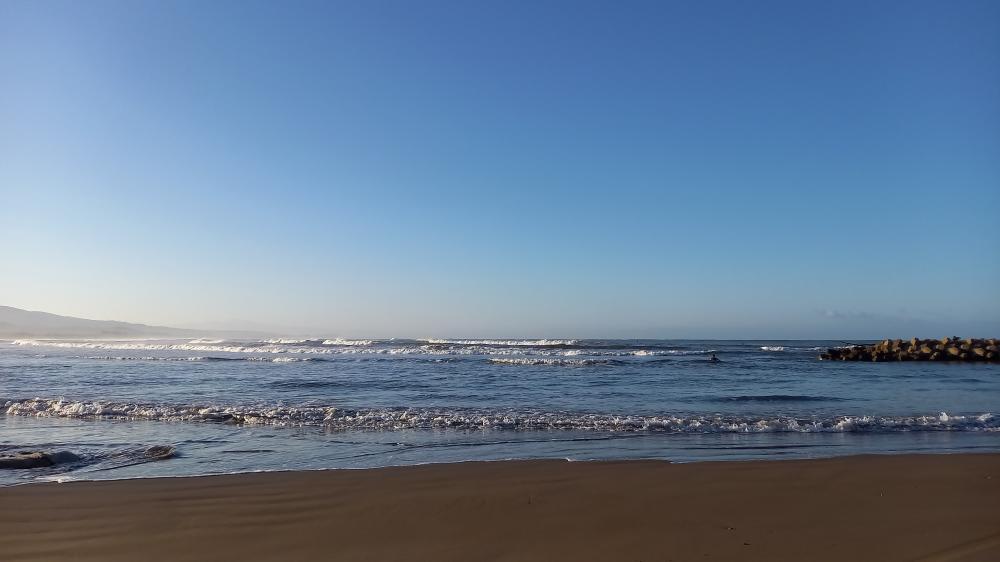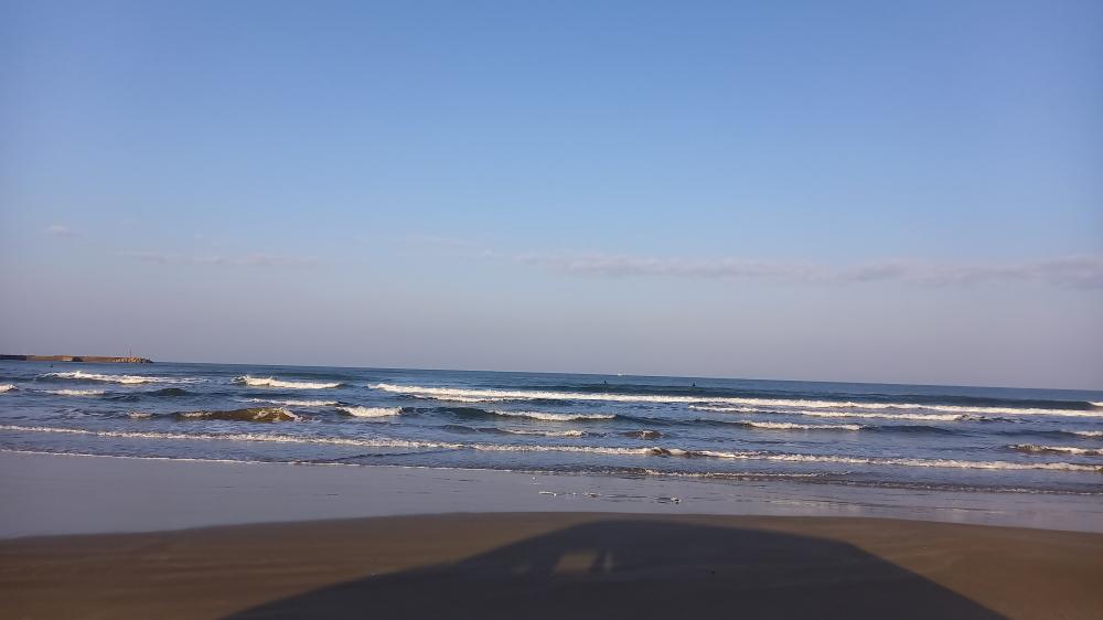ほぼ無風。面OK。サイズもも〜腰・腹。弱いウネリとミドルからインサイド寄りの厚くトロ・ワイドの速いブレイク。たまに入る大きめのセットの切れ目選べば繋いでアクション入れて走れます。人数 10 AM7:48