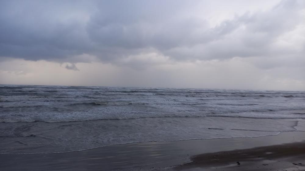 北西の風極強。クローズ・アウト!遥かアウトから頭オーバー・サイズの波と風が吹き荒れる大シケ状態。 AM7:56