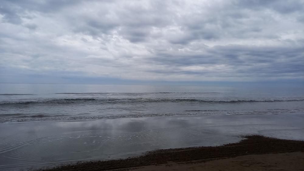 北北東の風やや強い。面OK。ほぼフラット!弱いウネリとインサイドのみで割れるすねサイズ以下のショア・ブレイク。サイズ小さくサーフィン厳しい。 AM7:57