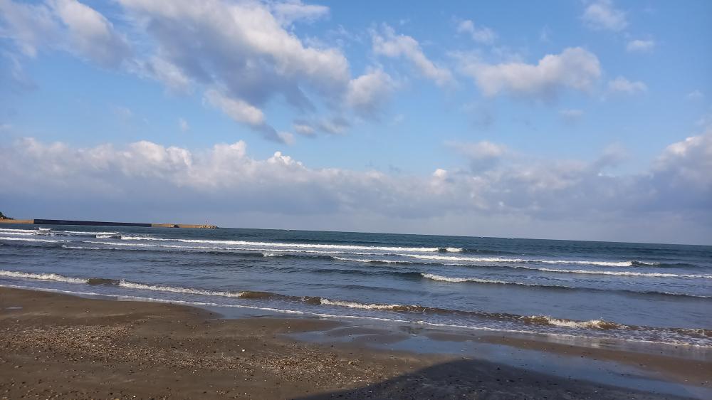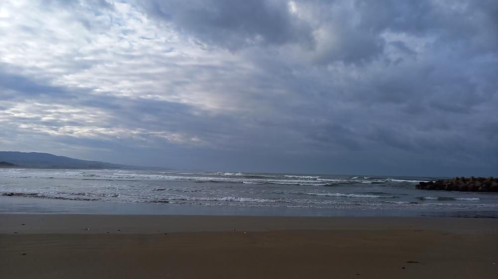 北の風弱い。面OK。サイズひざセットもも・腰。セット間隔長め弱いウネリとミドルからインサイド寄りの厚く掘れにくいトップのみのダラダラ。たまに入る大きめのセットの切れ目選べば繋いで少し走って1アクション程度可能。人数 4 AM7:53
