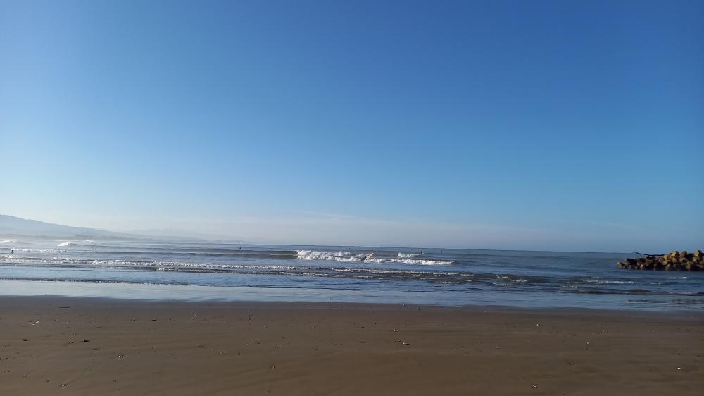 南東の風弱い。面ツル。サイズももセット腰・腹。弱いウネリとミドルからインサイド寄りの厚くトロ・ワイドの掘れにくいブレイク。たまに入る大きめの波の切れ目選べば繋いで少し走って1アクション程度入れて走れます。人数 20 AM7:47
