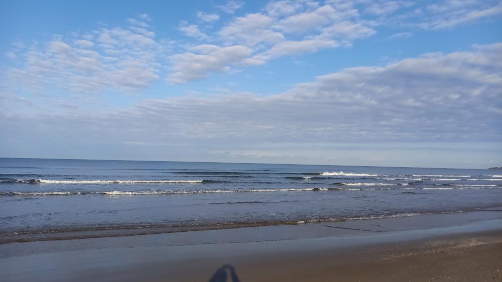 北の風弱い。面OK。ほぼフラット!微かなウネリとインサイドのみで割れるすねサイズ以下のショア・ブレイク。サイズ小さくサーフィン厳しい。 AM7:53