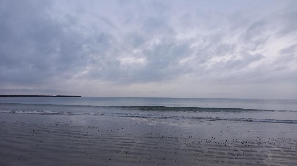 ほぼ無風。面ツル。ほぼフラット!微かなウネリとインサイドのみで割れるすねサイズ以下のショア・ブレイク。サイズ小さくサーフィン厳しい。 AM8:02