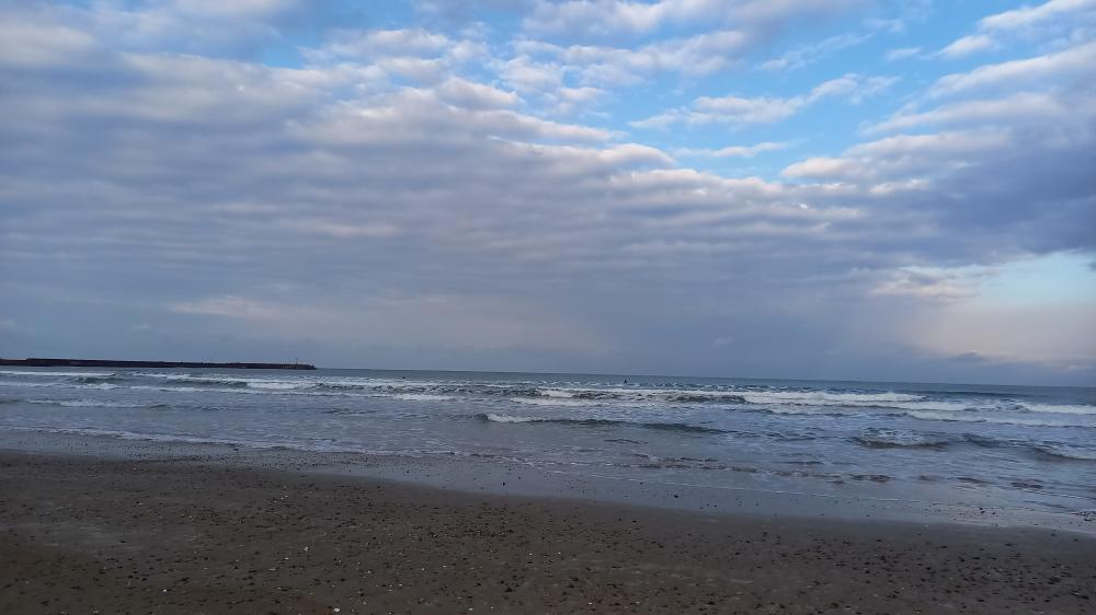 東の風弱い。面OK。サイズもも〜腰・腹。ミドルからインサイド寄りの厚く掘れにくいトップのみのダラダラ。たまに入る大きめの波の切れ目選べば繋いで少し走って1アクション程度可能。人数 6 AM8:01