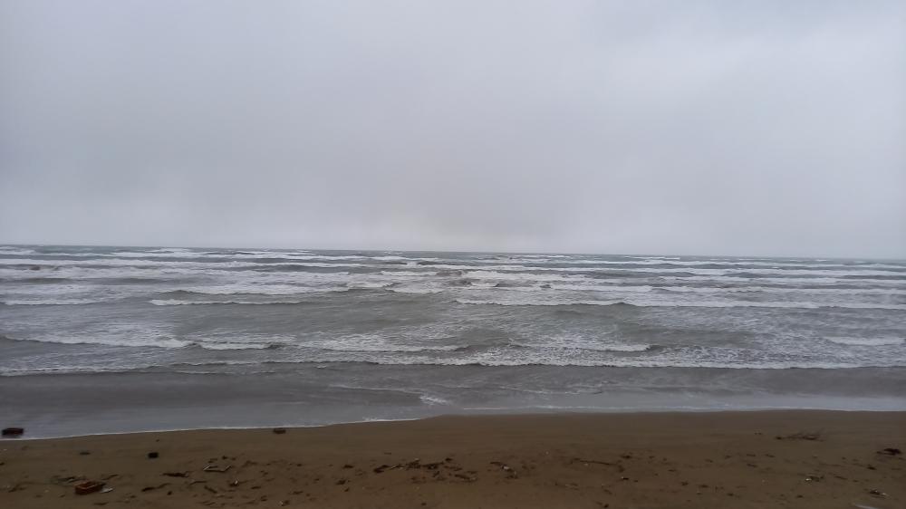 北西の風極強。クローズ・アウト!遥かアウトから頭オーバー・サイズの波と風が吹き荒れる大シケ状態。 AM7:58